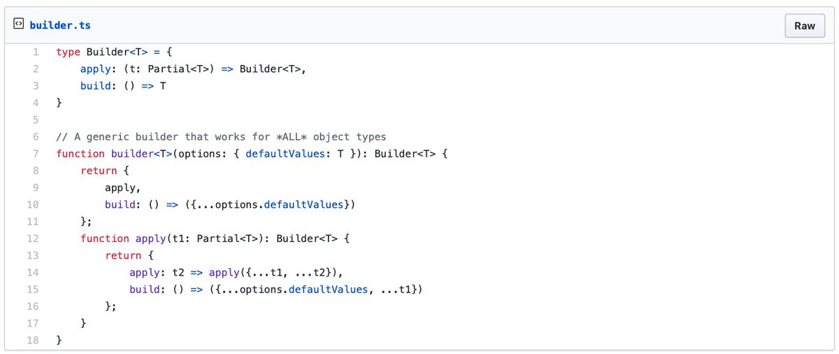 The new #TypeScript example * builds deep objects * defines default attributes * sets multiple attributes at once * sets attributes in arbitrary order * sets only some optional attributes pic.twitter.com/jnyGD9GBjL