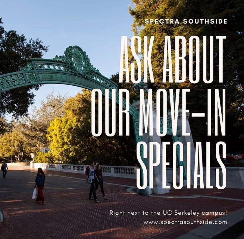 We currently have move-in specials going on for immediate move-ins! Contact us and inquire within! You can email us at spectrasouthside@assetliving.com or call us at 510-848-0481 during our office hours.