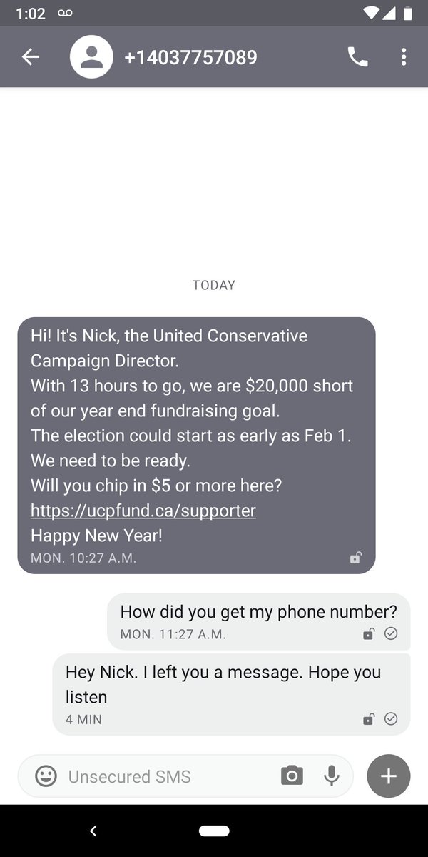 #UCP spam text. How do we report this@TELUS?#abpolipic.twitter.com/Y8FMLD4Esm