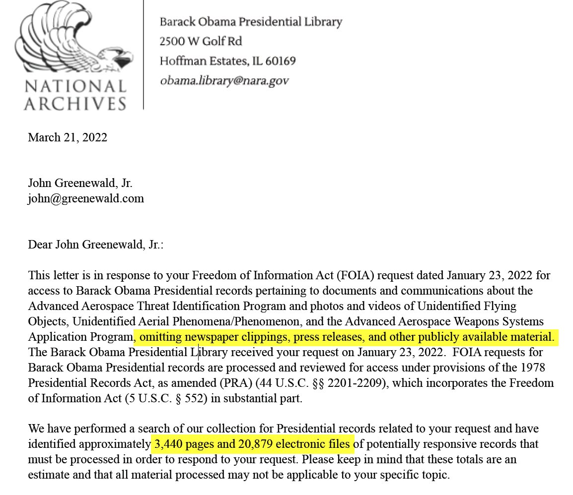#UFO Files UPDATE: In my effort to work with the library to get this sped up, I submitted an amendment to omit all news articles, press releases or other publicly available material. That ONLY reduced it by 6,000 electronic files, still leaving 20,879! pic.twitter.com/ak9y9vPv0J