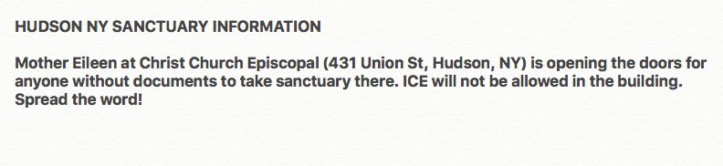 If you are in Hudson NY and fear detention by IC, please go to this CHURCH. share spread