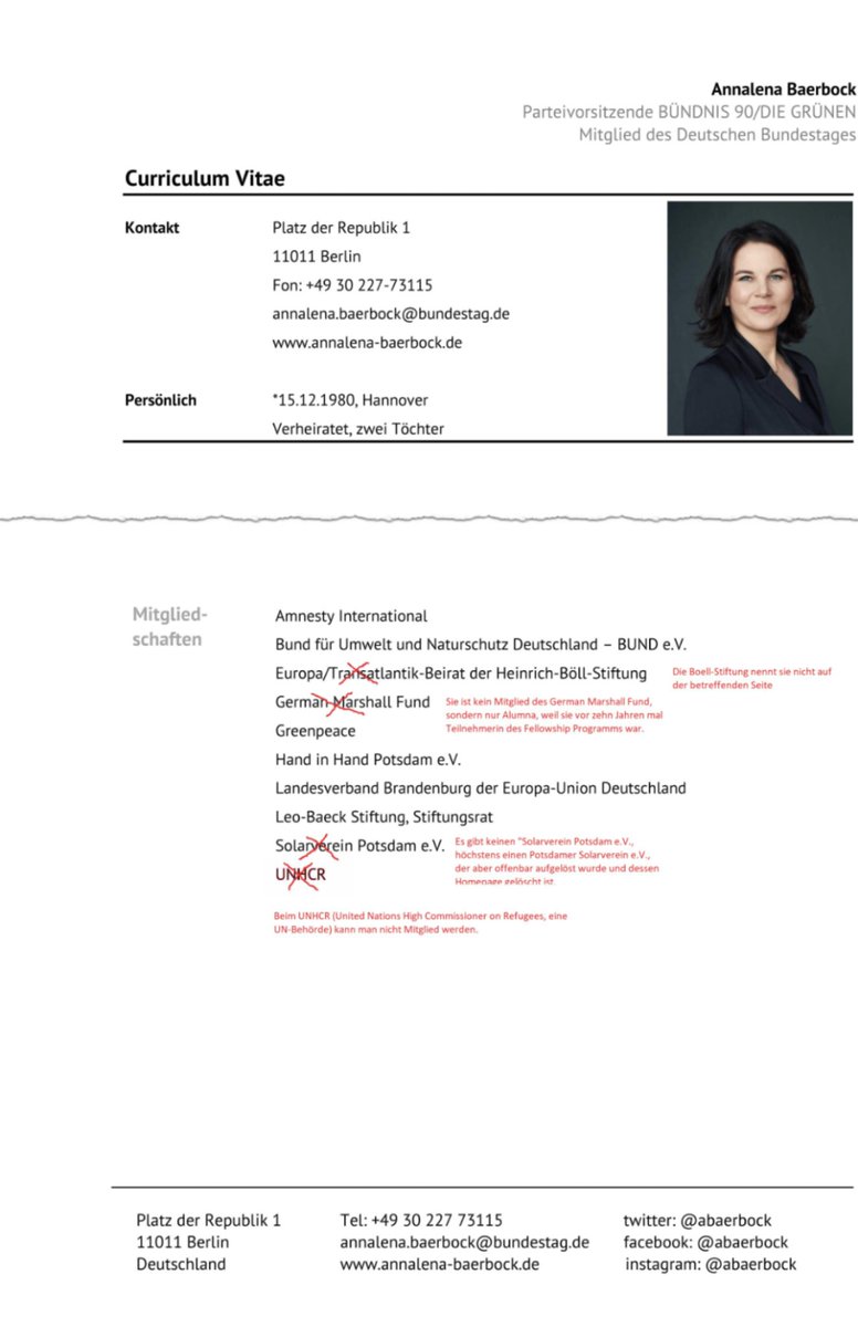 #Grünen,#Baerbock taumelt von einer Pleite in die nächste Panne: Bis vor kurzem gab sie sich als »Mitglied« der#UNHCR in ihrem#Lebenslauf aus. Bei der UNHCR kann man aber gar nicht Mitglied werden!