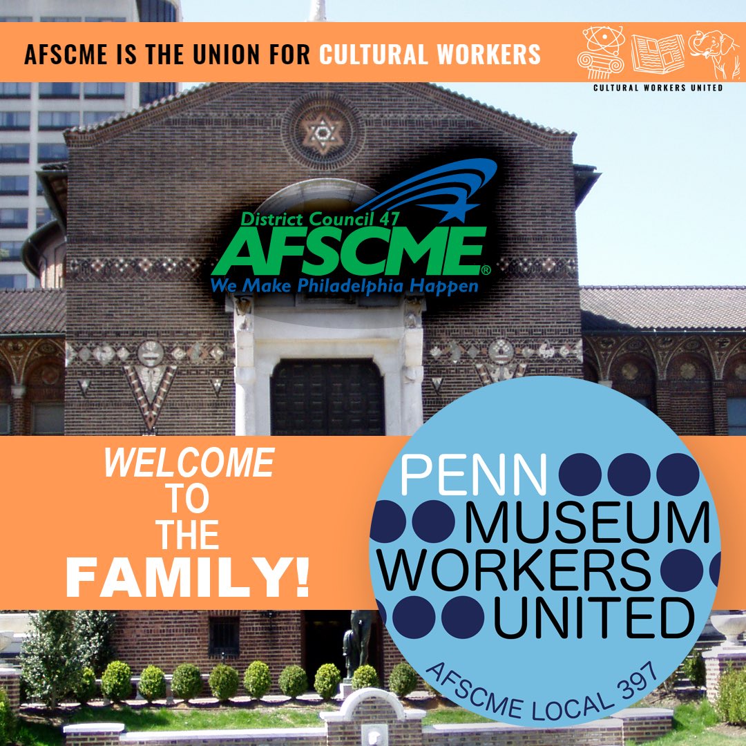 We're excited to announce as of today, our DC47 family is growing! Workers at Penn Museum have formed Penn Museum Workers United (PMWU), the second wall-to-wall museum workers' union affiliating with AFSCME Local 397. Follow them on IG: @pennmuseumworkersunited