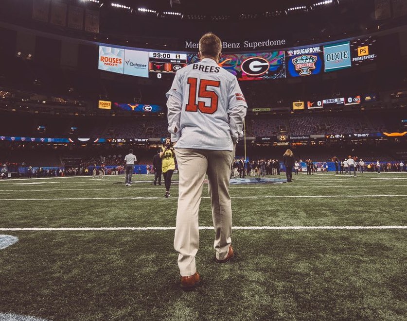 @sehlinger3 rocked a@drewbrees high school jersey. Both attended Austin Westlake High School.#uniswag pic.twitter.com/KGYHj3R5dY