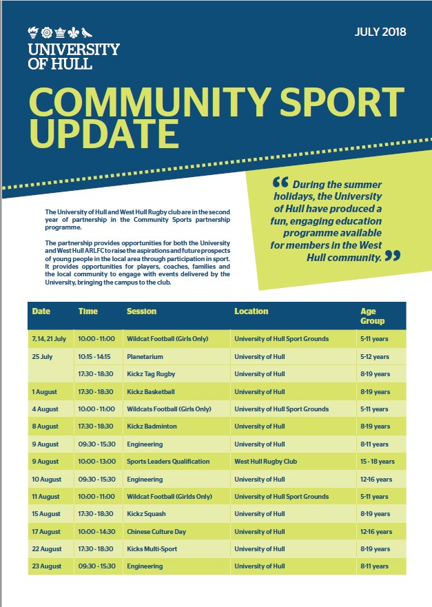 @UniOfHull &@WestHullARLFC summer programme as part of the Community Sports Partnership!