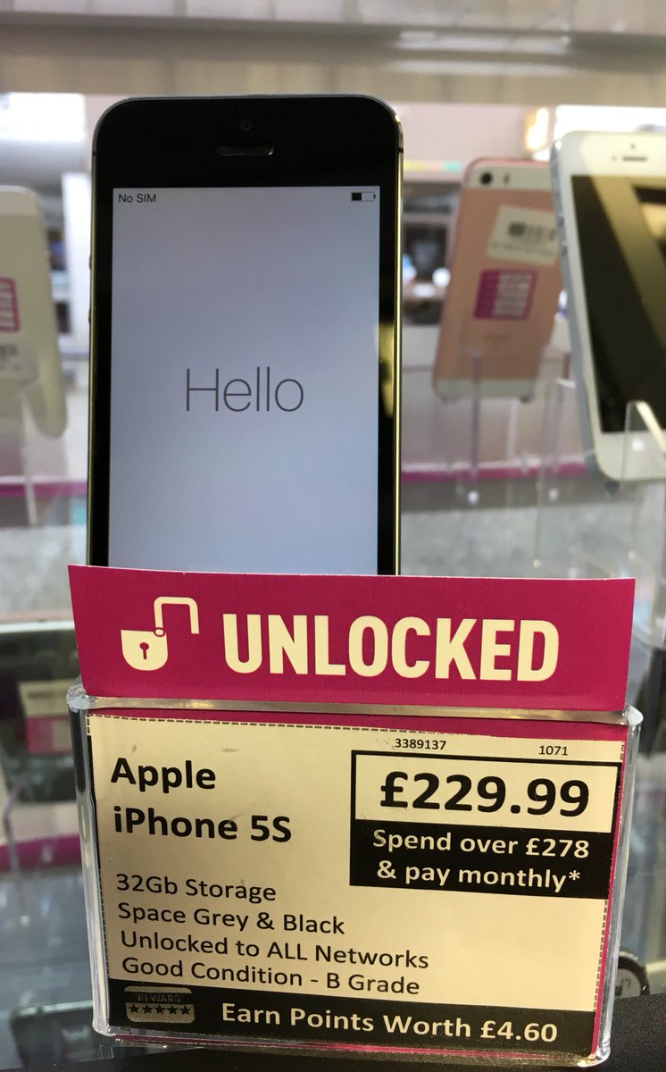 #iPhone5S, with 32gb storage, in great condition and#Unlocked to any network for just £229.99#TechTuesdaypic.twitter.com/rBd0hp9X4T