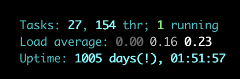00:00:14 up 14 days, 10:45, 1 user, load average: 0.68, 0.17, 0.05
