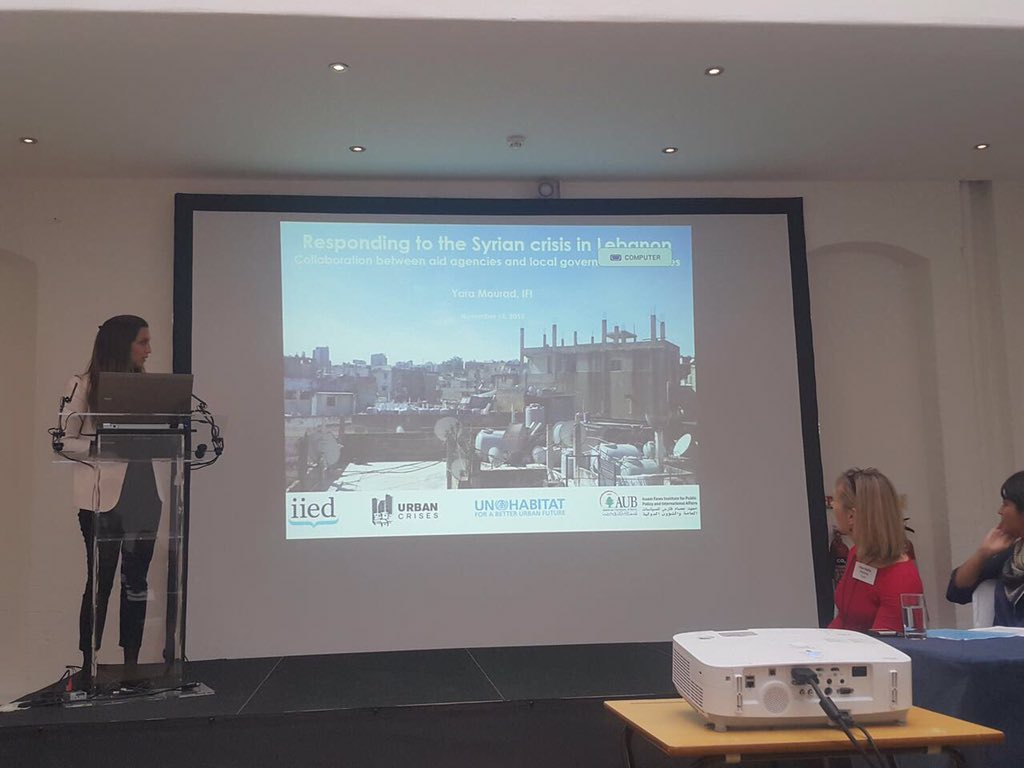 IFI Yara Mourad presenting on “Collaboration between aid agencies and local governance structures” at the