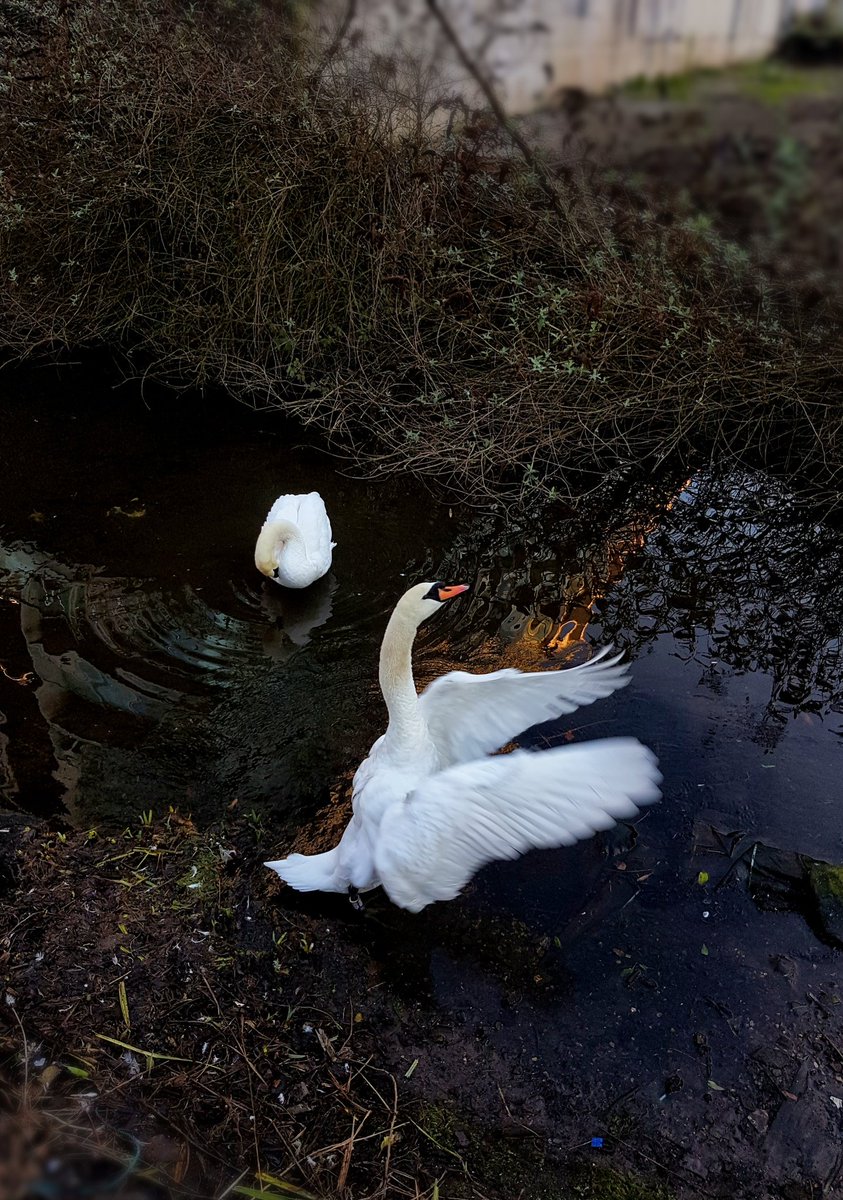 A preening swan welcomed us into the car park this morning. Think it's the pair that come back every year to nest. They're pretty chill.