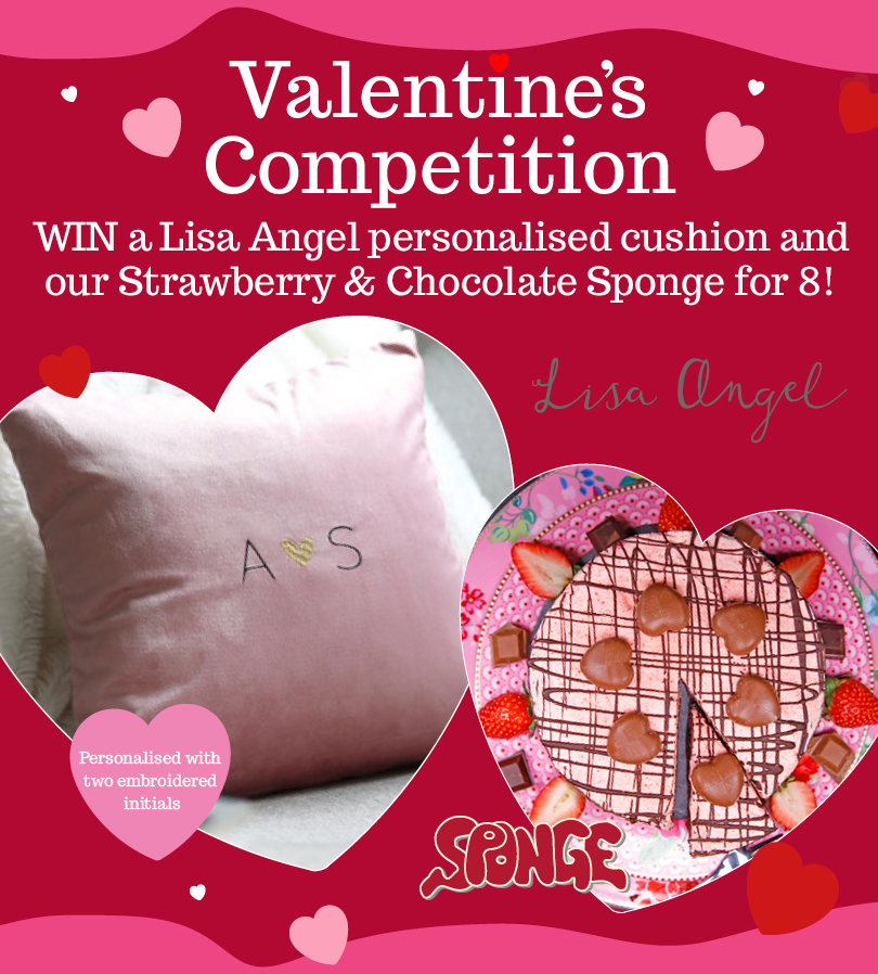 @lisaangeluk for a lovely Valentine's competition to win a personalised cushion and our Strawberry & Chocolate sponge for 8!