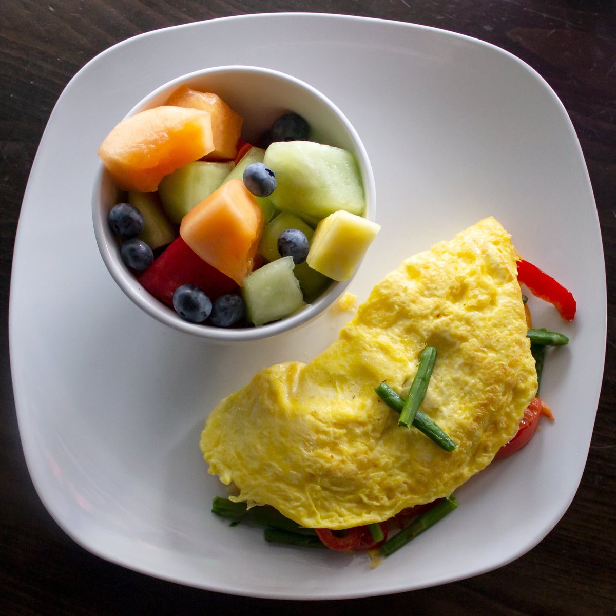 This week the Roots Veggie Omelette is loaded with asparagus, red peppers and Colby Jack cheese!