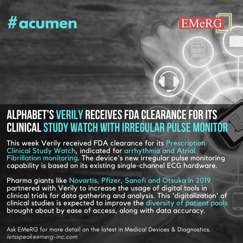 #Verily nets irregular pulse clearance for its#clinicalstudy#smartwatch https://buff.ly/2Ub1zz5#medtech#medicaldevice -