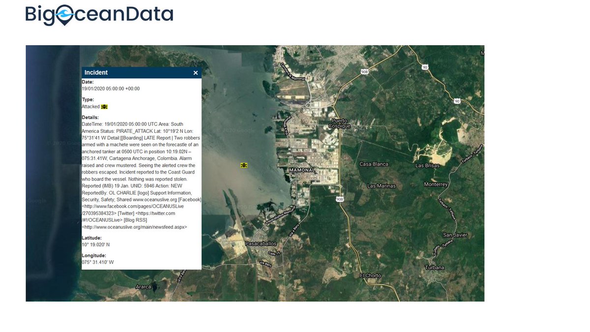 Piracy alert: Attacked reported at Latitude: 10 19.02000 N, Longitude: 075 31.41000 W on 19/01/2020 05:00:00 +00:00. Details DateTime: 19/01/2020 05:00:00 UTC