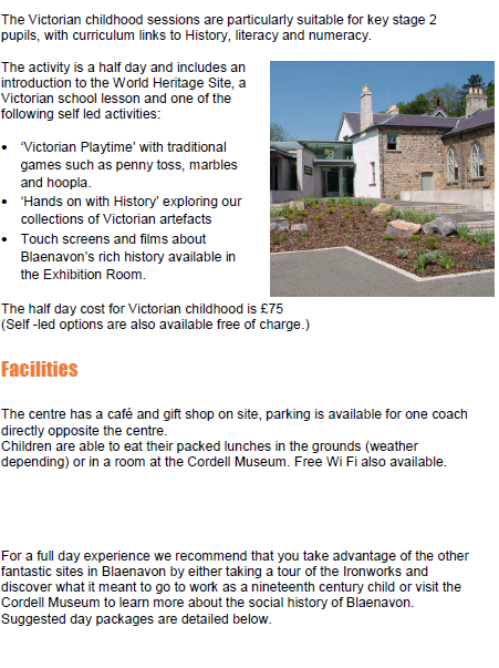 Are you a primary school teacher or T.A.? Are your children learning about Industrial Heritage, Victorians, etc? Take a look at the education package we offer at Blaenavon World Heritage Centre.
