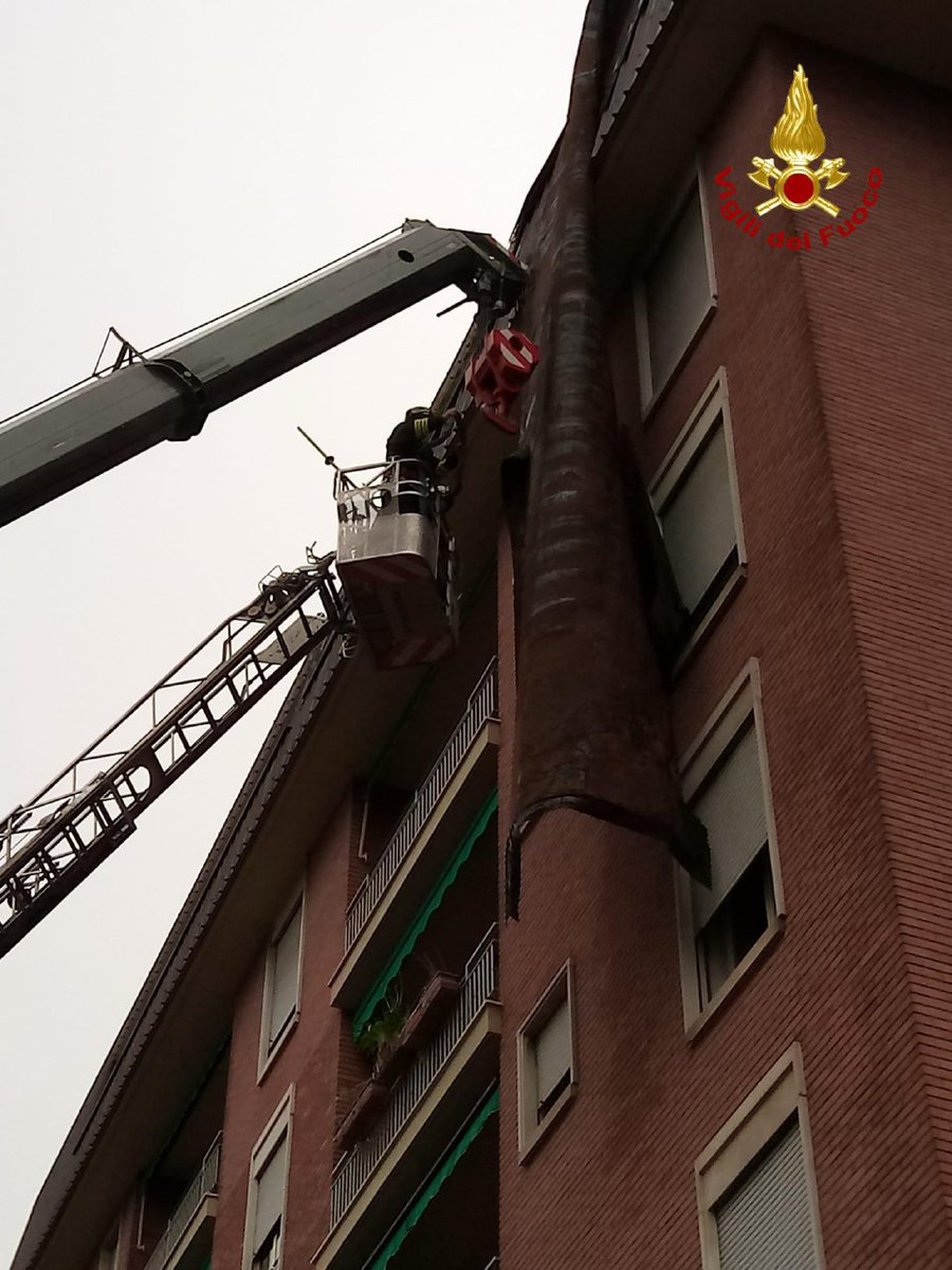 #7gennaio 8:15, in fiamme da stamattina il tetto di un edificio: evacuato lo stabile. Quattro squadre di#vigilidelfuoco impegnate nelle operazioni di soccorso pic.twitter.com/rW9yRstycr