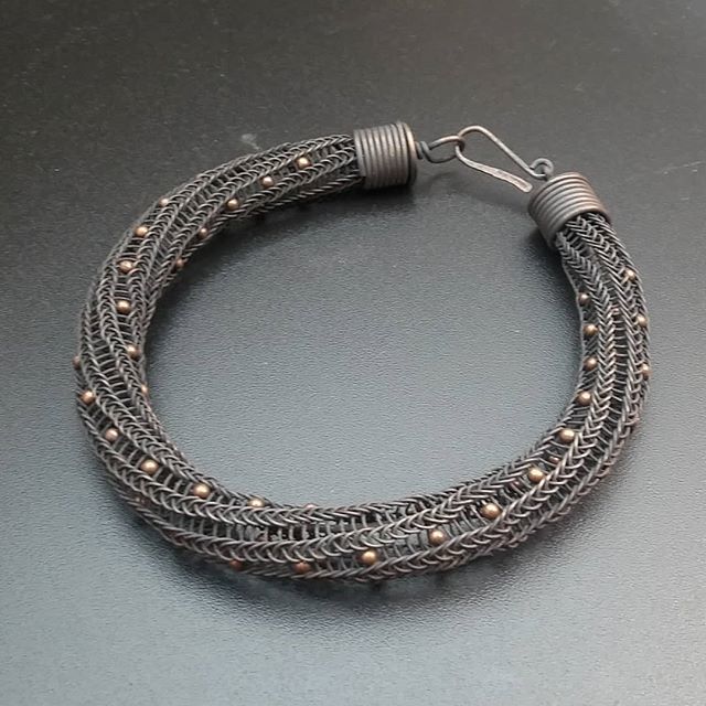 #vikingknit bangle has a natural spiral and subtle accent beads. Loving the matte look of unpolished liver of sulphur patina!#canadianartjewellery#lsufbg#dpktao#yearofjewelryproject week 19 https://ift.tt/2rv2tqH pic.twitter.com/48BwkIYRNT