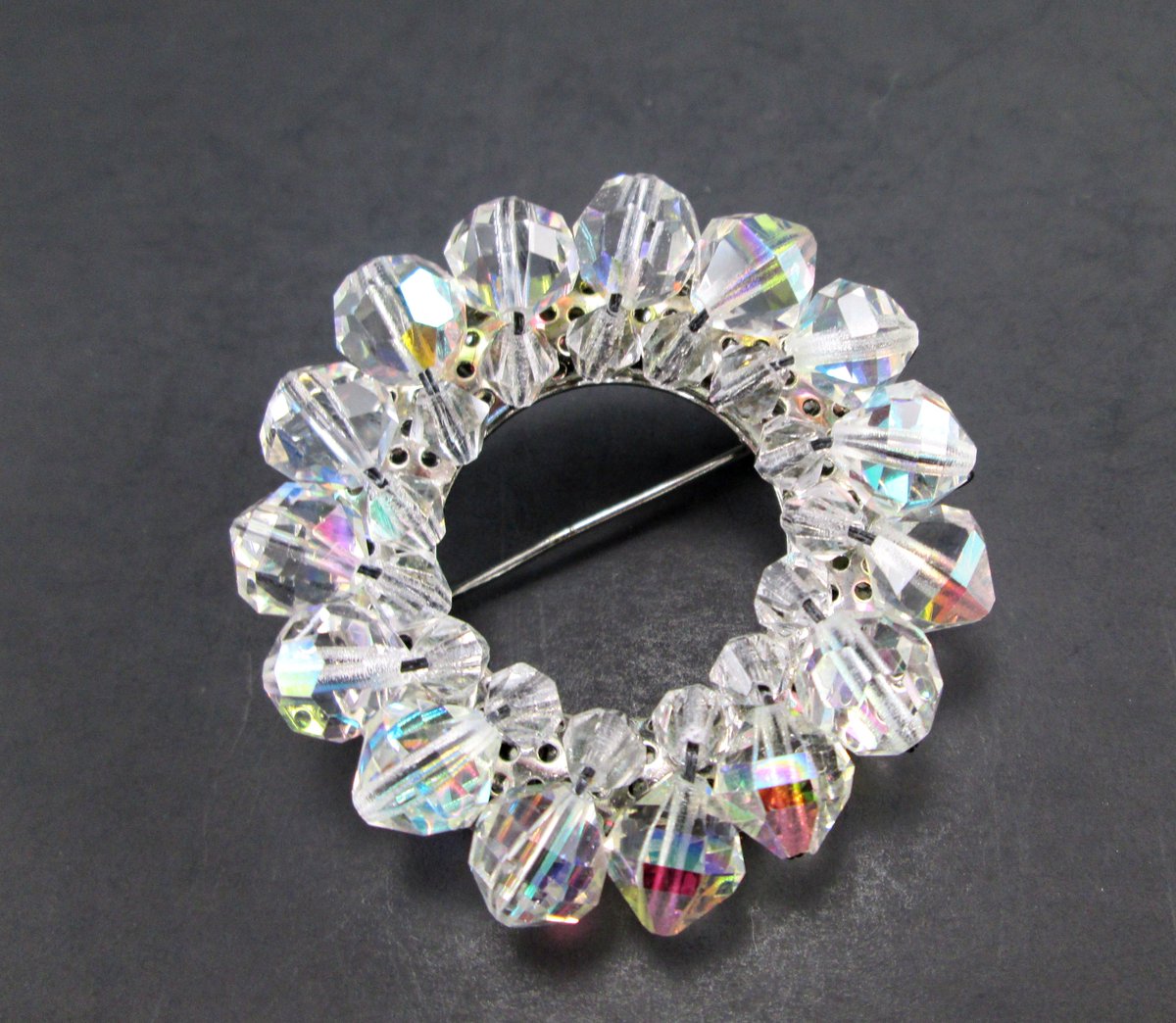 Vintage Aurora Borealis AB Bead Silver Tn Round Circle Wreath Brooch Pin 60s at SecondhandNel https://etsy.me/2LokDCl via