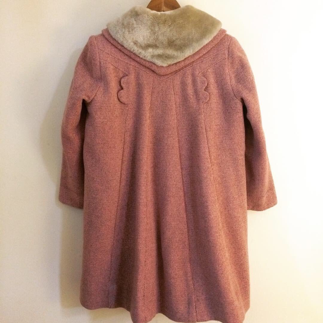 The last of my ‘little ones’ coats that I just have to share: Pretty in Pink with faux fur collar and just the loveliest of detailing. Again, I’d love this in my own size! Measures: 19” across the shoulders and 32” long.