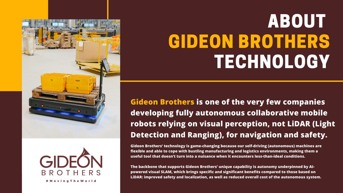 Gideon Brothers is one of the very few companies developing fully autonomous collaborative mobile robots relying on visual perception, not LiDAR (Light Detection and Ranging), for navigation and safety.
