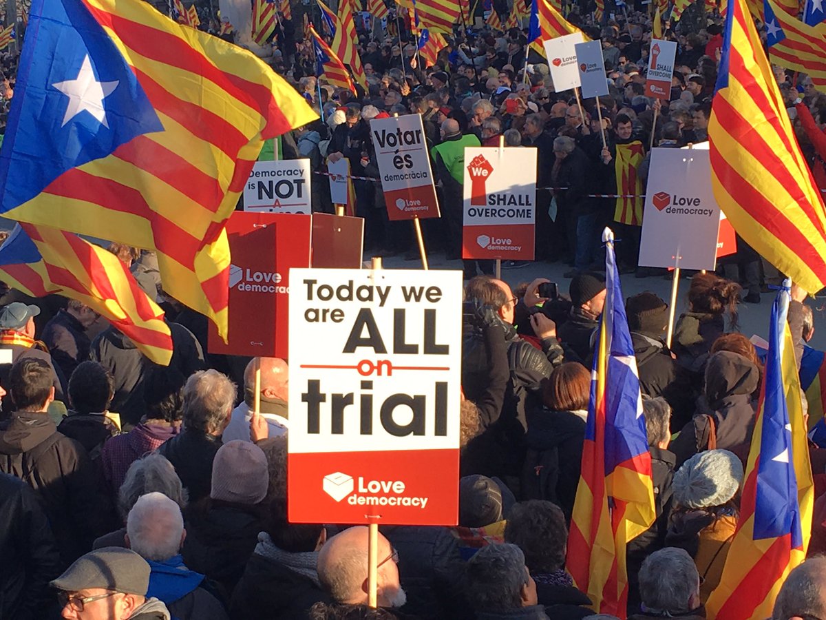 #democracy on trial in#Catalonia -> Massive support for former representatives@Catalangov - prosecuted because they let citizens#vote pic.twitter.com/cECztHanQt