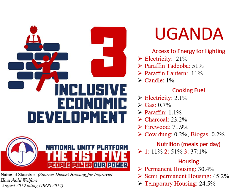 51% of Ugandans depend on paraffin tadooba for domestic lighting. 11% survive on 1 meal a day. Only 30% live in permanent housing. In the 21st Century. After 34 years of NRM and Museveni. 58 years after Independence.