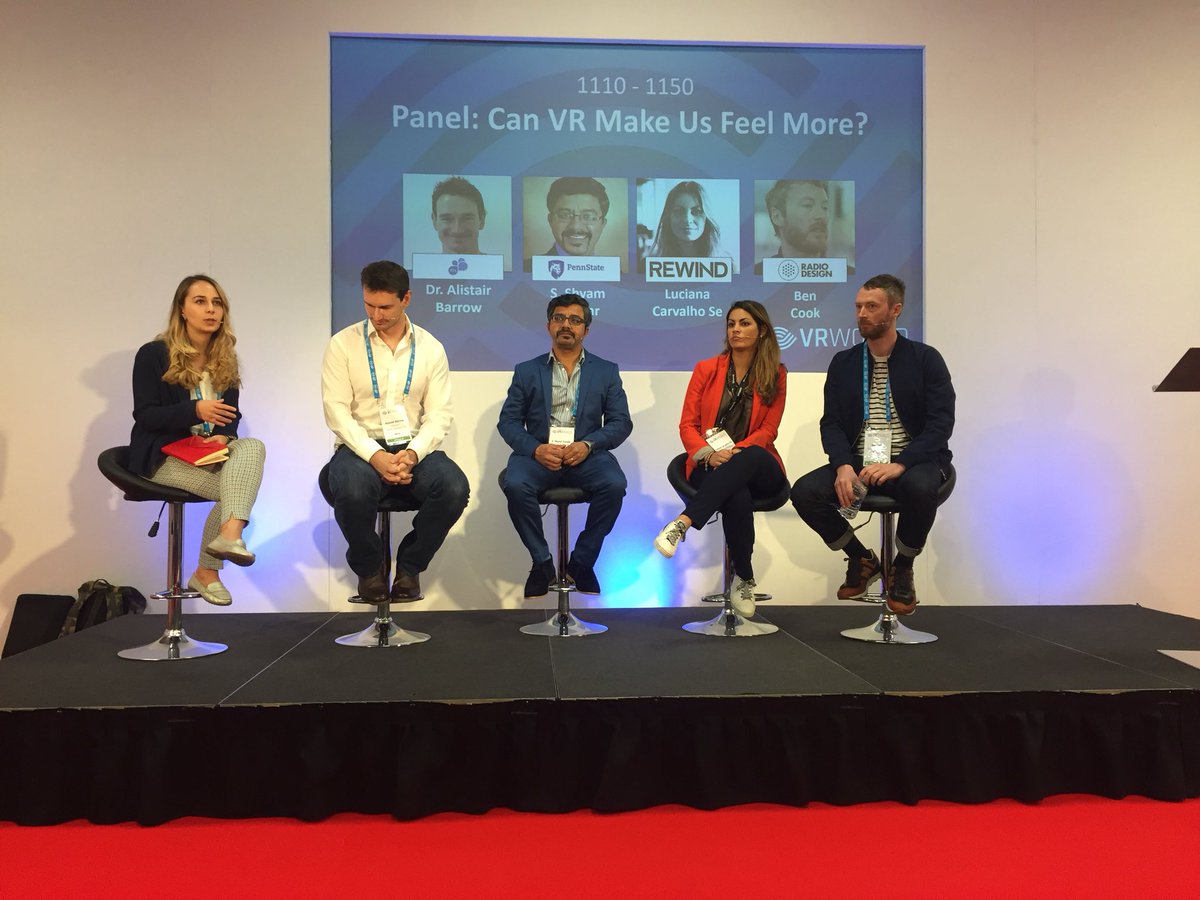 #VR make us feel more? Realism of#VirtualReality creates a sense of presense. Credibility stimulates emotions, influences behaviour & promotes empathy.#VRWorld#Tech#Event#Panelpic.twitter.com/hzdVpoAz6R