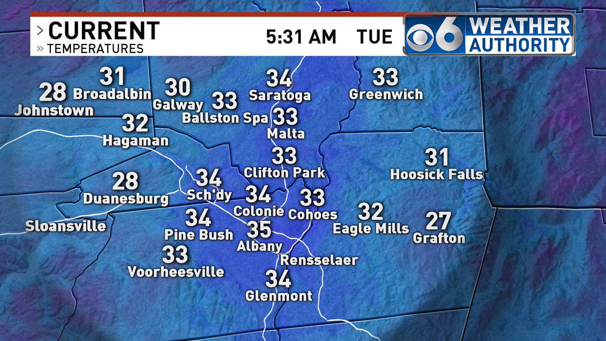 Most areas in the lower and mid 30s again this morning.