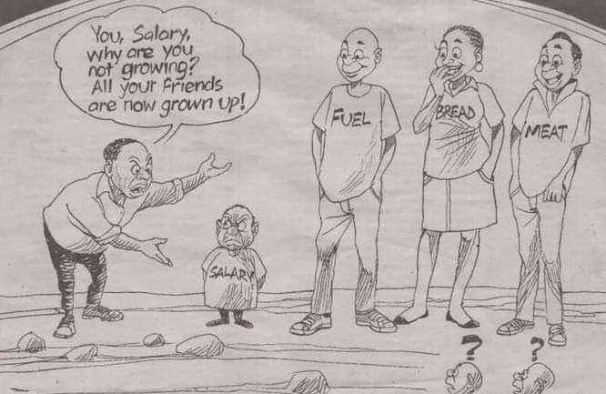 #WageTheft is a source of conflict and employers must rate our salaries based at the interbank rate because our contracts are USD contracts. Business perpetuating price increases whilst salaries are stagnant. Source of cartoon unknown @Zimra_11 @ZctuZimbabwepic.twitter.com/oTxS3h0J9a