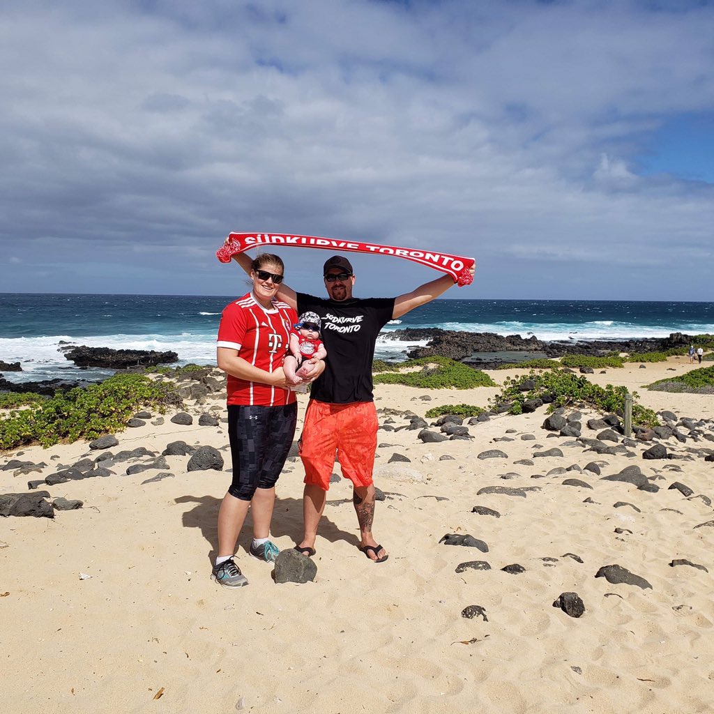 #TravelTuesday to#KaenaPointTrail in#Waialua,#Oahu,#Hawaii where@SuedkurveTO members@Adamaniac86, Cheryl, and baby Logan are repping#SKTonTour and making us all super jelly