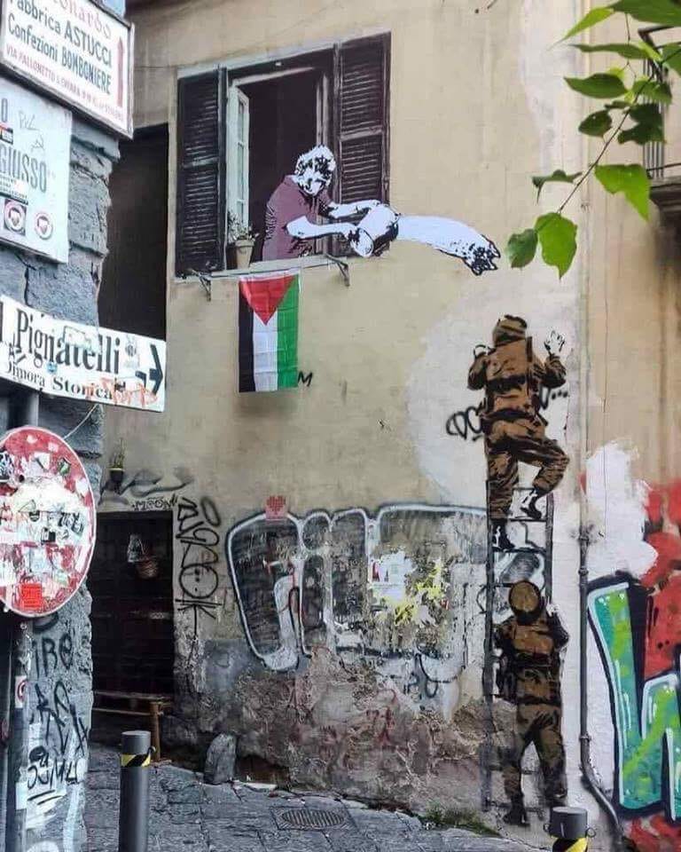 #Italians for#Palestine#WallArt in the street of#Naples,#Italy in support of the#Palestinians resisting the#Israeli occupation#FreePalestine#FreeGaza#BDS#ICC4Israel#GroupPalestinepic.twitter.com/y0M8qNzy1V