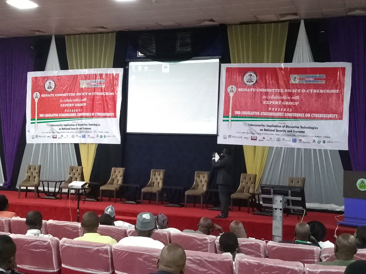 #hacking demonstration at the on-going Senate Committee on#ICT &#Cybercrime Conference happening at the Nigeria Air-Force Conference Centre, Abuja. Alex Umeh was on the console “breaking things”#smb#wannacry#shodan#kali#senatepic.twitter.com/Pf4UdzaFYO