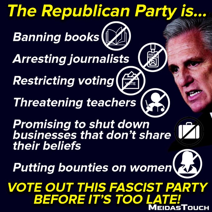 Don't you see what Republicans are doing? We are almost there. The Midterm election is the last chance to preserve our democracy. Voting is our only weapon to defend our democracy and to defeat fascism and dictatorship. Retweet.