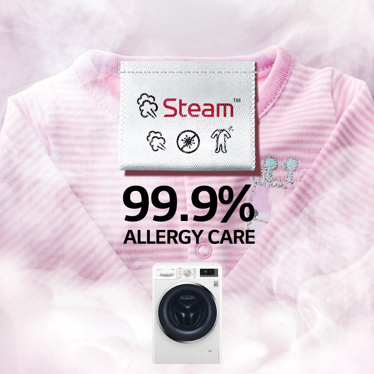 Reduce upto 99.9% allergens, such as dust mites that can cause allergy or respiratory issues with LG Steam™ washing machine.
