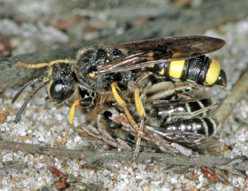 #waspoftheweek no. 6 is Cerceris rybyensis. The ribbed metasoma of this Genus is distinctive - I think it looks like the Michelin man! This species hunts smaller solitary bees, often as they return to their nests laden with pollen.#waspwednesday#wasplove Photo: Jeremy Early pic.twitter.com/WeApXPlvCi