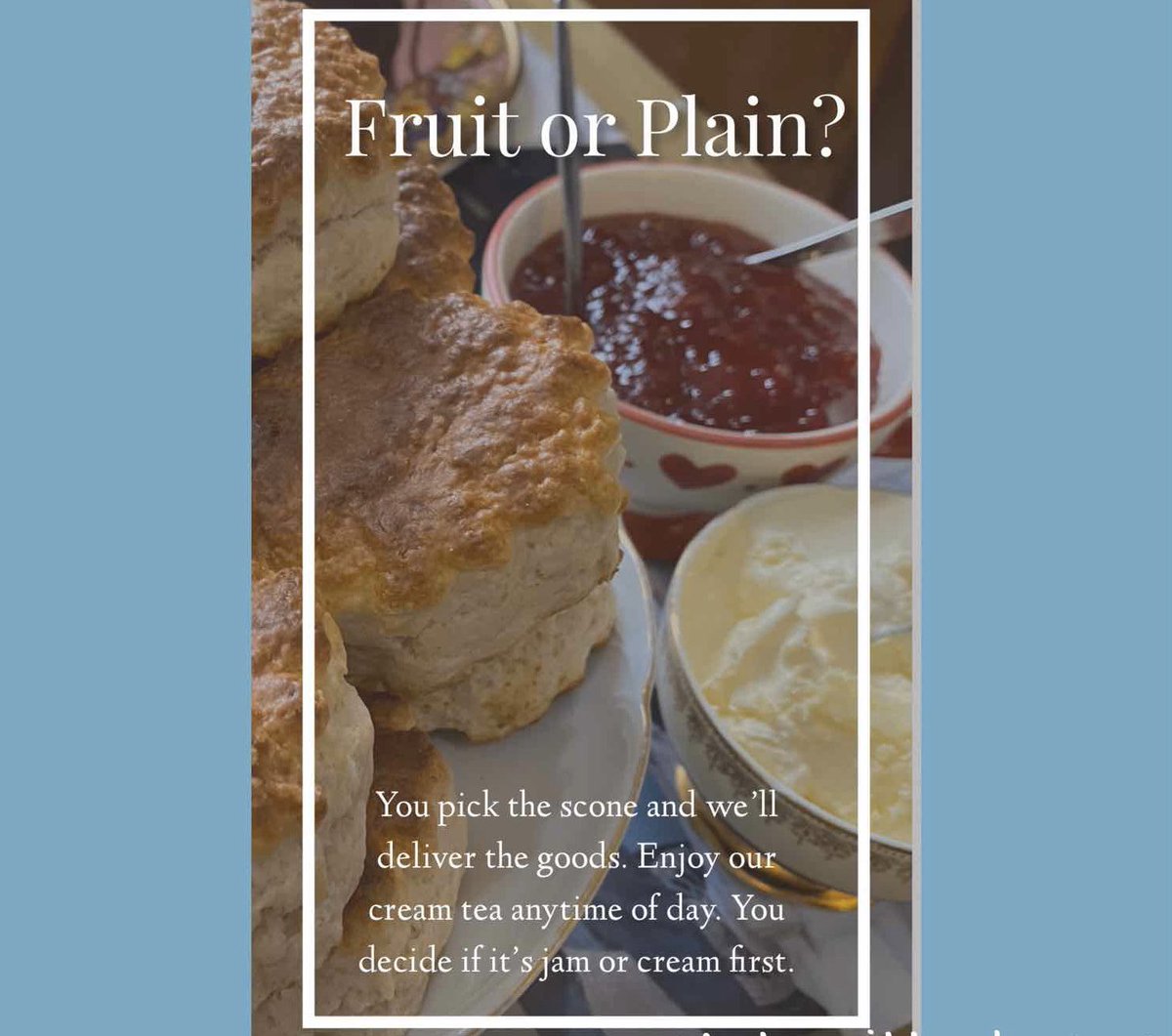 Just a cream tea or a full afternoon tea? Fruit scone or plain scone? All sounds good!
