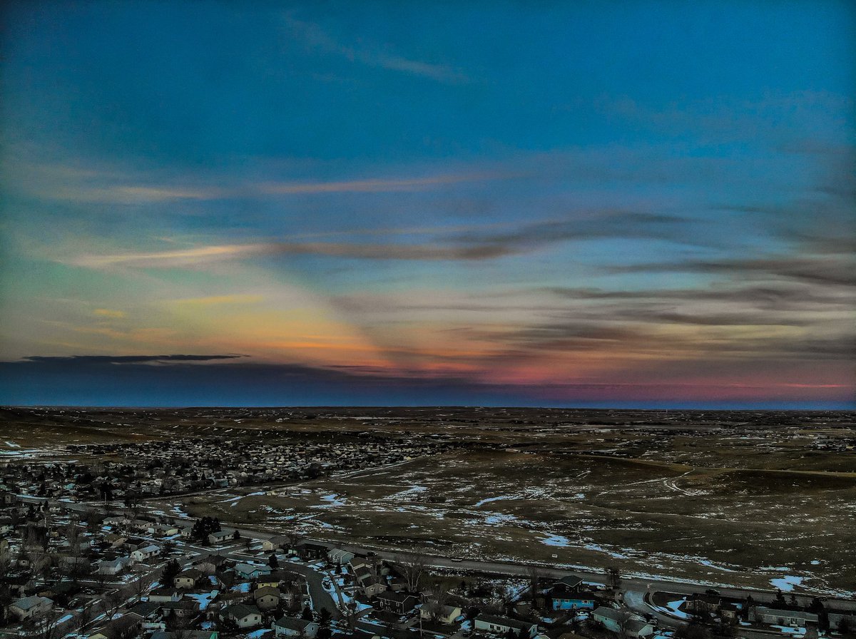 #sunset this evening. I was also able to catch the rare#anticrepuscularrays off to the northeast just after sunset was a bonus.#droneshot#sdwx#kotawx#blackhillswx#weatherphotos#picoftheday#ItsAmazingOutThere#aerialphotographypic.twitter.com/LxDxsUPKFr