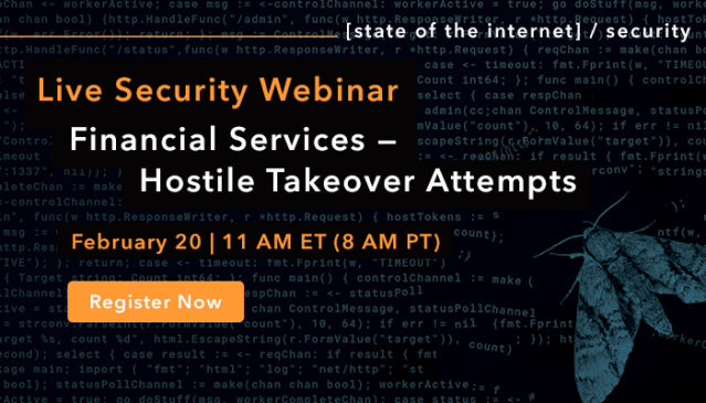 Join our live webinar for detailed research and analysis from the upcoming State of the Internet / Security: Financial Services — Hostile Takeover Attempts report. February 20, 8 AM ET. Register now.