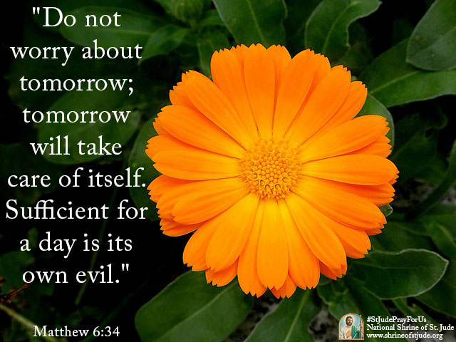 "Do not worry about tomorrow; tomorrow will take care of itself. Sufficient for a day is its own evil." - Matthew 6:34 -