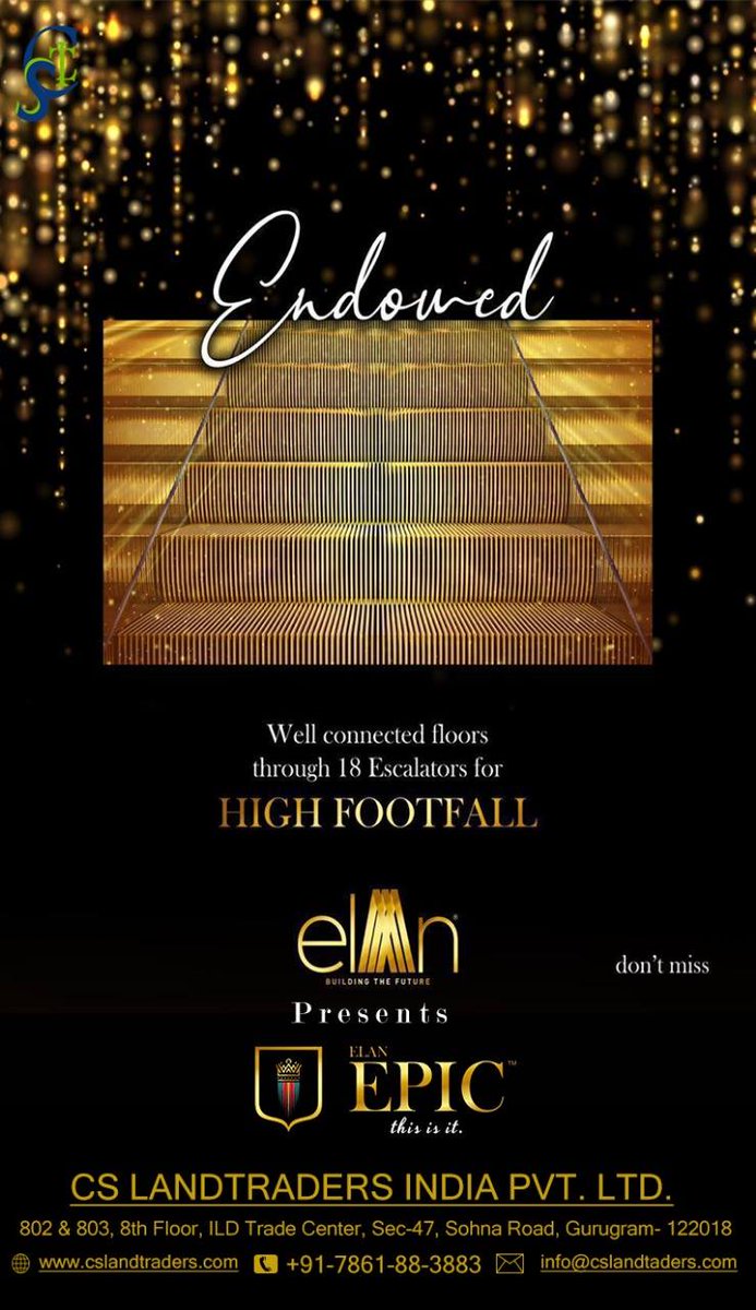 #ElanGroup Presents#ElanEpic A well-endowed with connected floors through 18 Escalators for High Footfall. Schedule a visit with#CSLT +91-7861-88-3883#WhatsApp at 9910088018 Mail at info@cslandtraders.com#SiteVisit#ElanProject#Sector70#Investment#WellEndowed#NewProjec pic.twitter.com/l4n0xhC3XA