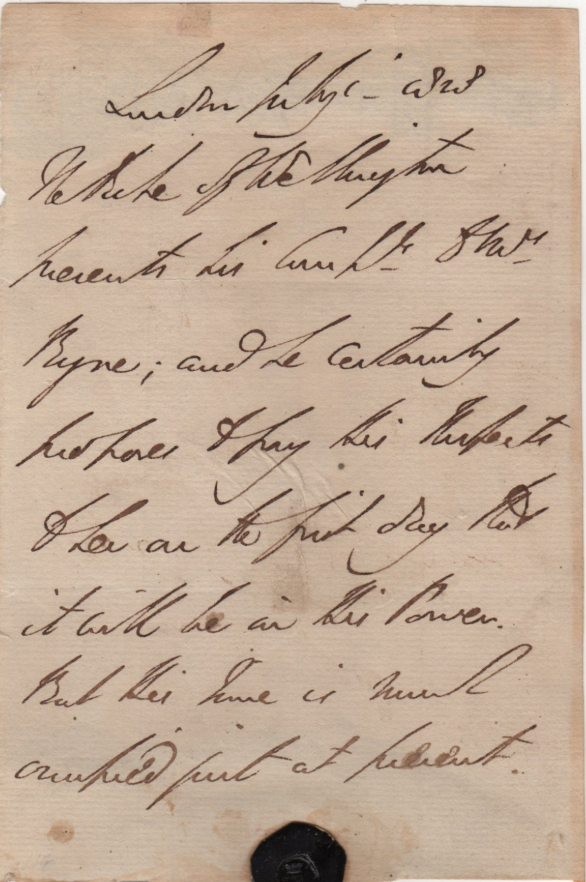 A letter from the Duke of Wellington to Mrs Byrne. Anybody who can translate what it says wins a prize!