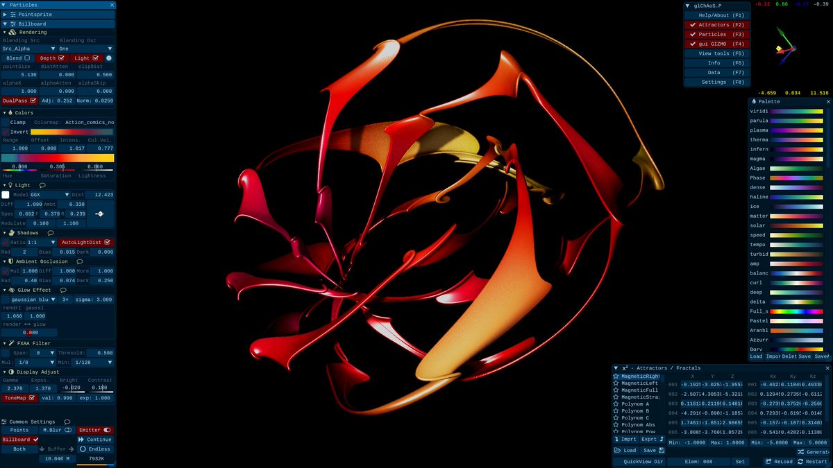 #glChAoSP new ver. 1.4.0 3D realTime#ParticleSystem#StrangeAttractors scout and hypercomplex#fractals OpenSource / MultiPlatform: https://github.com/BrutPitt/glChAoS.P …#wglChAoSP also LIVE online#WebGL /#webAssembly lightened version here: https://www.michelemorrone.eu/glchaosp/webGL.html …pic.twitter.com/Gbl2toiPlN
