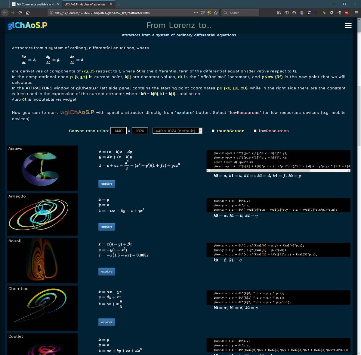 #glChAoSP site and to give them more math connotation Now is also possible to explore a specific attractor, viewing it in#wglChAoSP (#WebGL/#WebAssemly), directly from html page https://www.michelemorrone.eu/glchaosp/dtAttractors.html …pic.twitter.com/xeEhCtxWKD