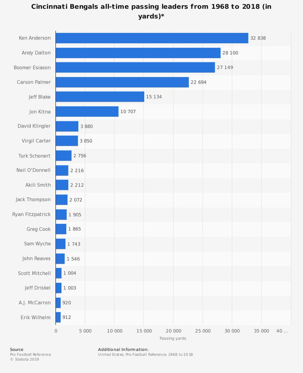 A visual of the Bengals all-time passing leaders.