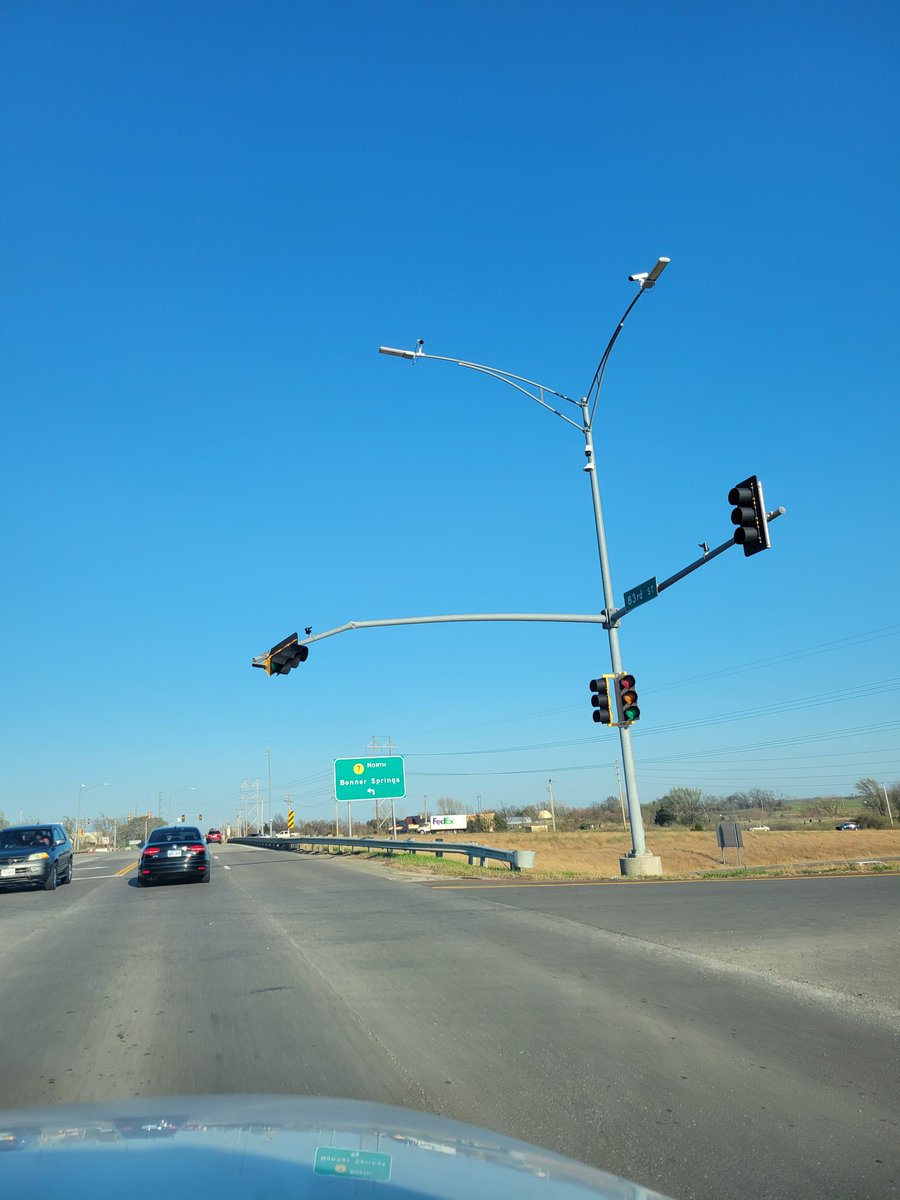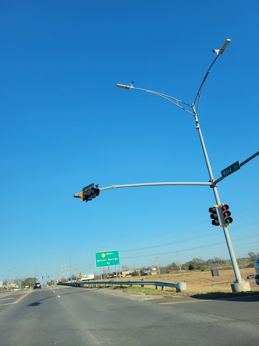 Kansas. Where the wind blows so hard it bends the stoplights.