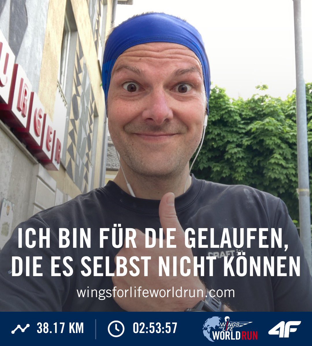 Not bad. Ich bin gerade 38.17 km beim Wings for Life World Run 2020 gelaufen.