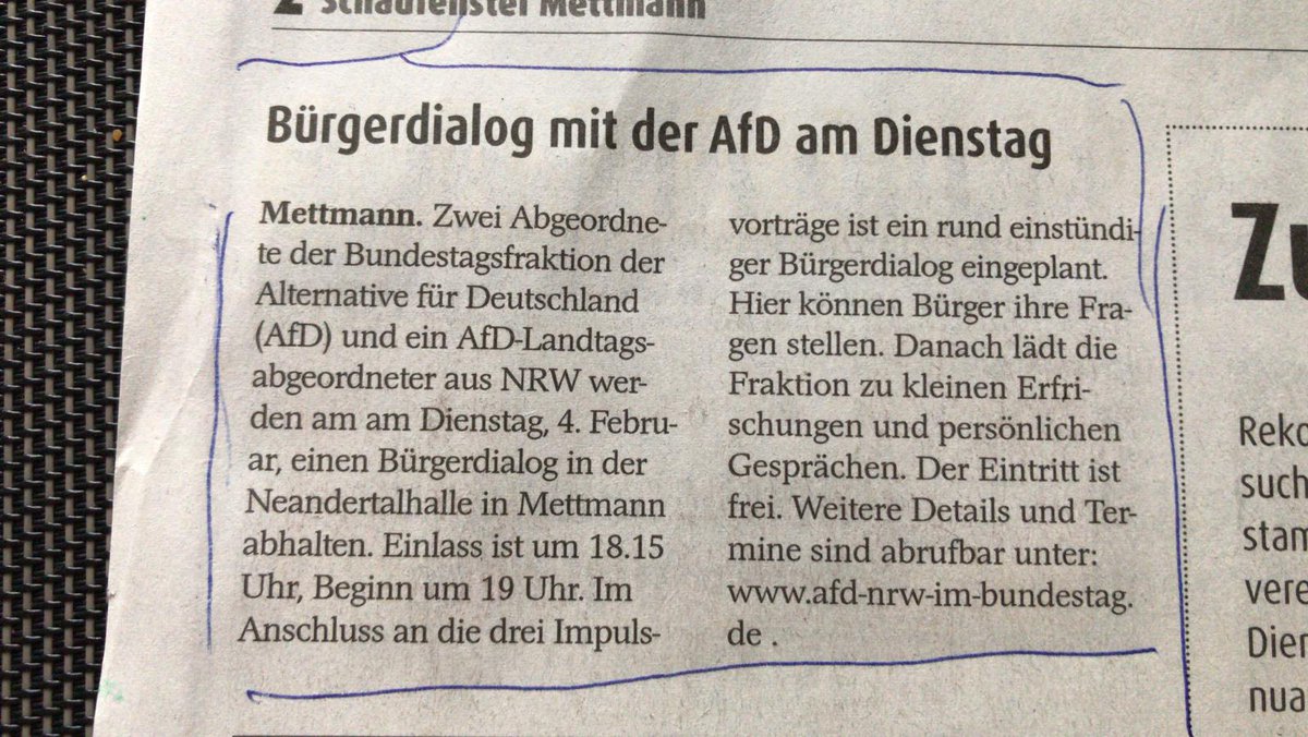 #noafd lädt am 4. Feb. zum Bürgerdialog in#Mettmann in die#Stadthalle#Neandertalhalle Gegendemo startet 17:30 vor der AWO Gottfried-Wetzel-Str. Lasst uns zahlreich und laut sein.#wirsindmehr#nonazis#keinfussbreit#Omasgegenrechts#Mettmannistbuntpic.twitter.com/mYJ2UIzQhV