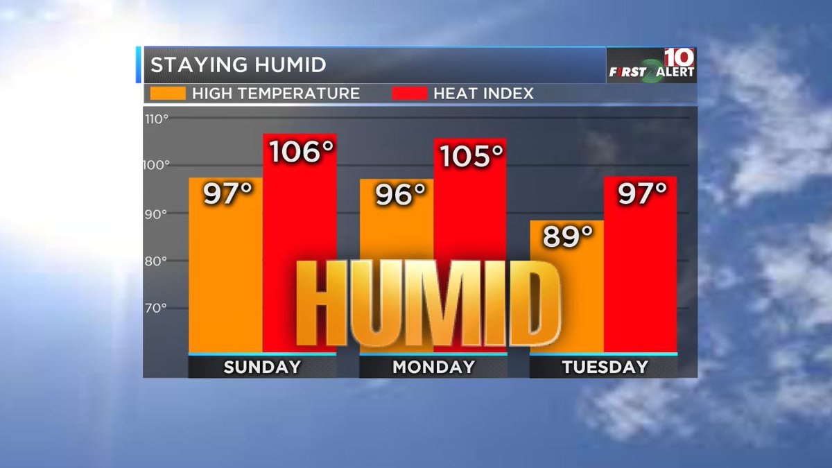 As far as our forecast today. It's going to be another hot and very humid day. High temps 95-97 with heat index values 103-106. Sunshine with a few passing clouds
