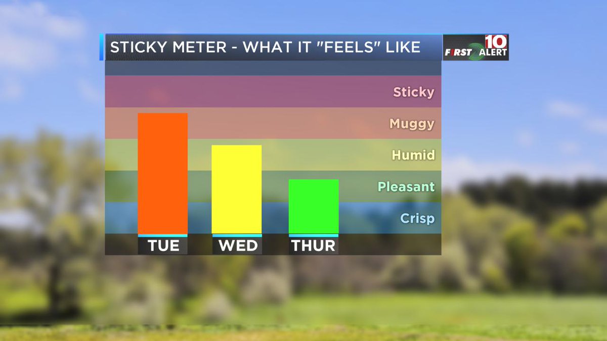 One of these days isn't like the others. That's right, Tuesday will feature downpours and storms that will keep the actual temperatures down below normal but it will still be very HUMID