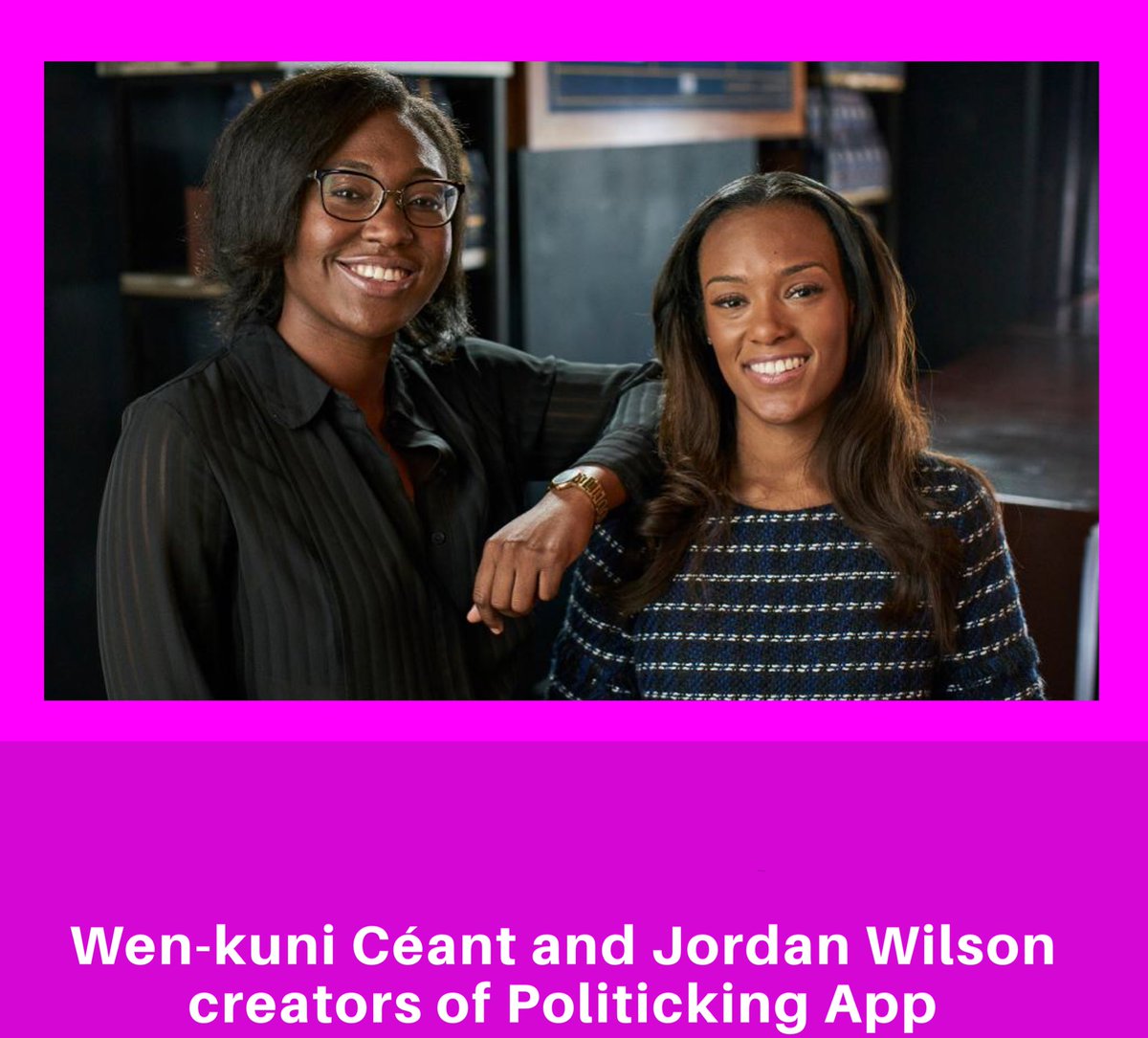 we are shining a spotlight on Wen-kuni Céant & Jordan Wilson creators of @politickingtheapp The #app gives users the upper hand when going to#vote#womeintech#IowaCaucuses#tech#SuperBowlpic.twitter.com/J02zJ50Mt5