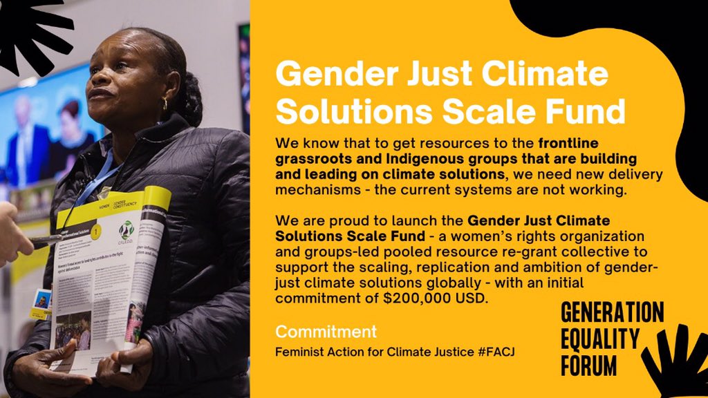 #climate solutions are everywhere! With this#GenerationEquality commitment, the Gender Just Climate Solutions Scale Fund will collectively resource, scale, & amplify#feminist & grassroots solutions all over the world.#FACJ#WomenClimateJustice pic.twitter.com/nHCfpQXkmy